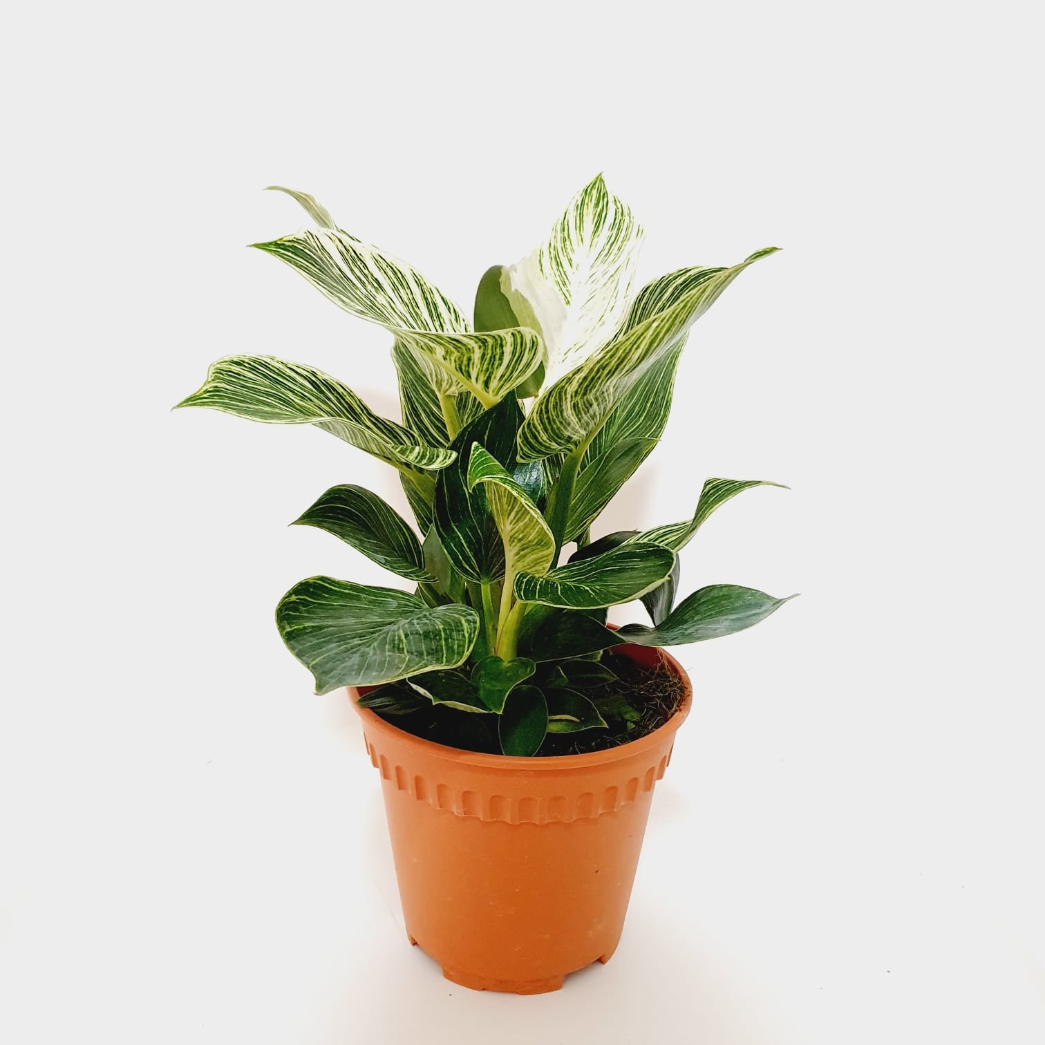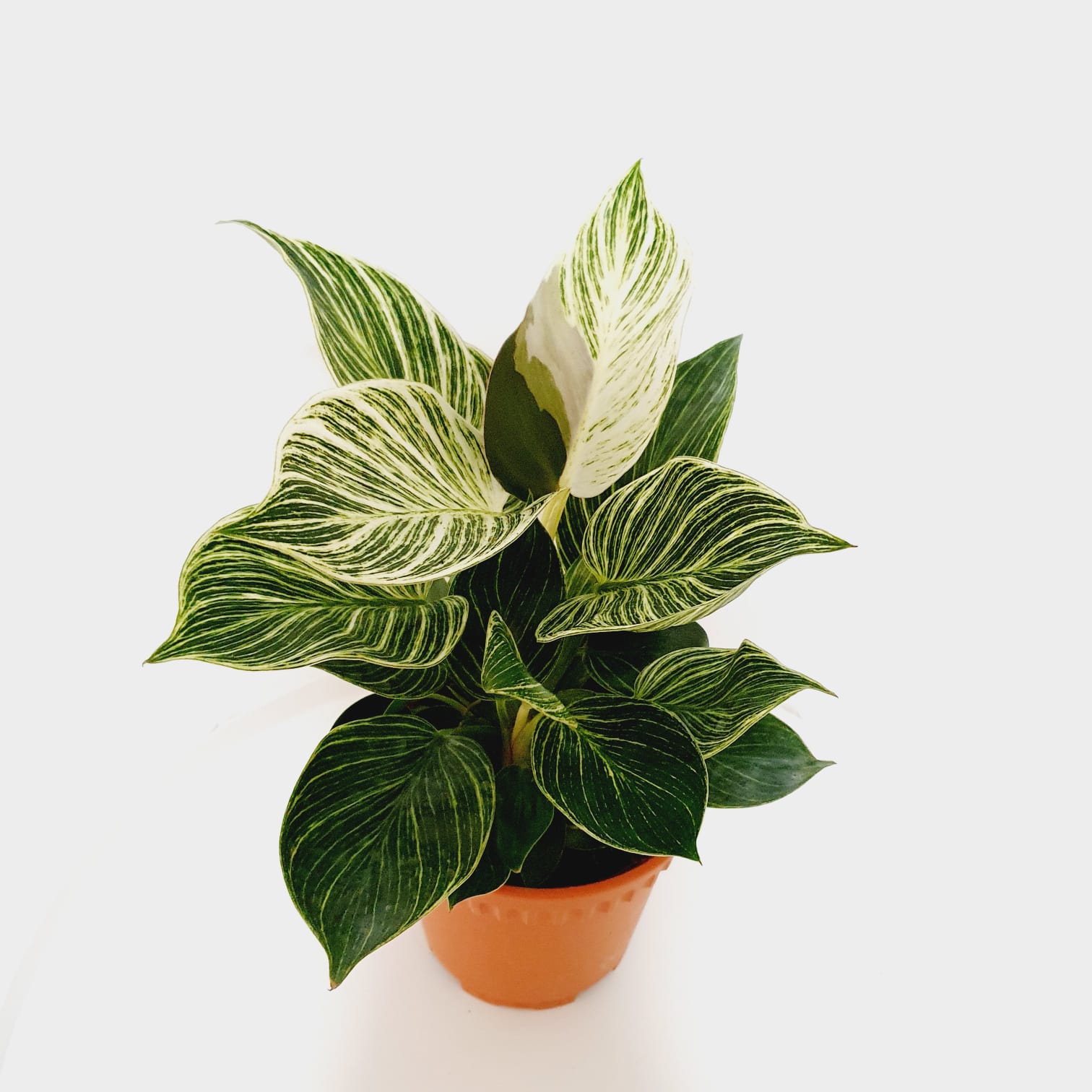 Philodendron Birkin is a Houseplant known for its distinctive greensand white pinstripes.